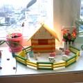 Вот сценка из жизни семейства Кукушкиных – мама, озирающая свои огородные владения, сынок Ванюша, присевший передохнуть, и дочка Танюша – на качелях развлекается, нет, чтоб грядку прополоть) “Дети” – куклы из капрона с проволочным каркасом, чтоб гнулись ручки-ножки, “мама” – глиняный сувенир из Крыма. Домик делала для кукольного театра